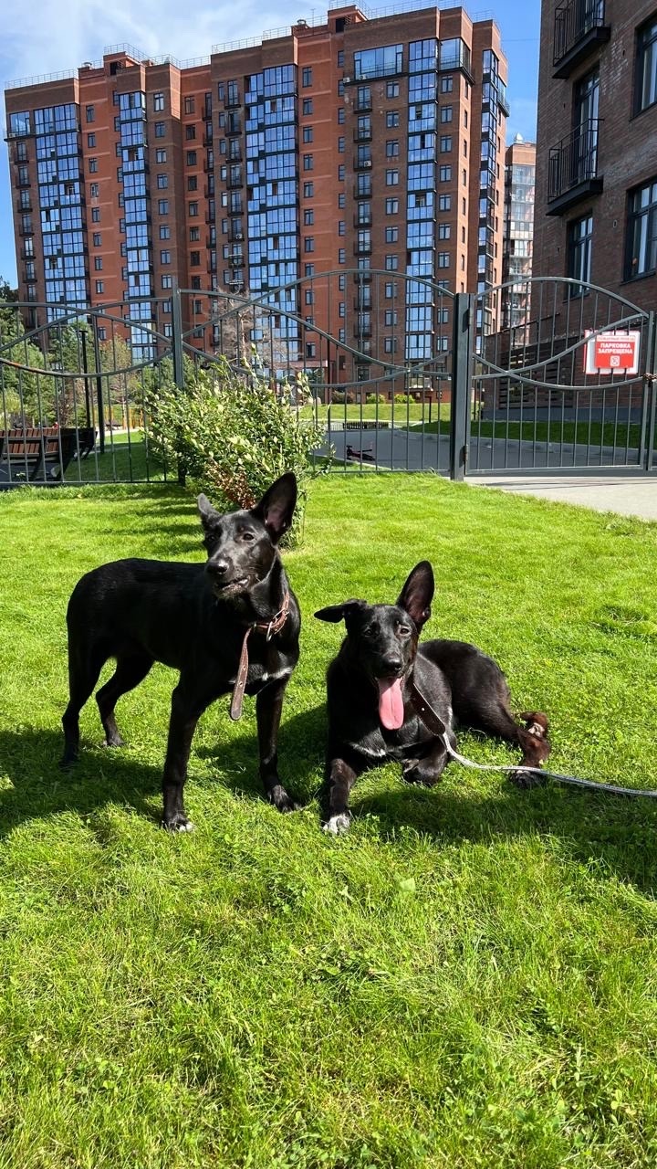 Весьма компанейские, как только выходят гулять, ищут себе друга-собаку, чтобы поиграть и побегать. Но мы стараемся гулять с ними в лесу, так как в городе надеваем намордник.